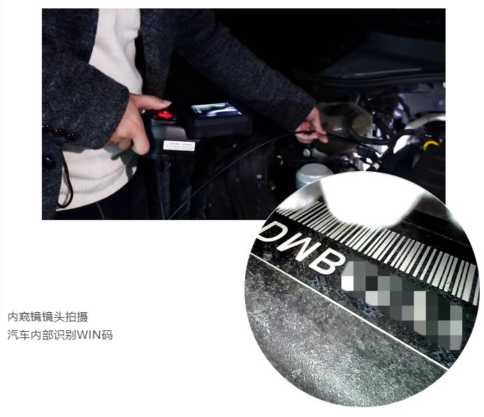 雙模適配:古安泰X3工業內窺鏡超細探頭(微觀)與嵌入式高清攝像頭(宏觀)自由切換,既可捕捉車輛外觀全景,又能深入發動機艙內部識別WIN碼。