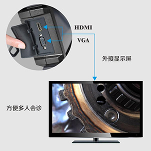 | 主要功能 | 三維測(cè)量(高配版)、探頭鎖定/釋放、快慢速調(diào)節(jié)、密碼鎖、圖像旋轉(zhuǎn)、畫面凍結(jié)、圖像放大、圖像對(duì)比、亮度調(diào)節(jié)、時(shí)間水印、圖像分辨率/色彩/效果/情景模式調(diào)節(jié)、參考線、圖片涂鴉、文字標(biāo)記、圖片/視頻遠(yuǎn)程分享、視頻直播推流、在線升級(jí)、多語(yǔ)言菜單等 | |||||||